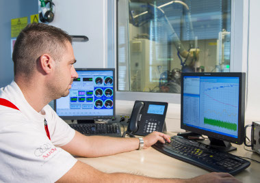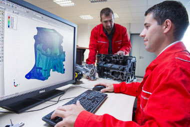 De ez még nem minden, hiszen ha egy kicsit változtatnak valamelyik alkatrészen, meg kell vizsgálni, nem lett-e zajosabb a motor. Ehhez egy speciális zajkamera áll a rendelkezésre, a meghatározott geometriai mintában elhelyezett 60 mikrofon által rögzített zajokat a középen lévő kamera képén grafikusan jelenítik meg. Ez a motor ujjlenyomata, amellyel aztán a világ minden részén lévő Volkswagen-konszern fejlesztőközpontban tudnak dolgozni. A motor karosszériára gyakorolt hatásait (rezgések) is vizsgálják, a tűzfal rezgéseit lézerrel nézik, az 1200 mérési pontot egy órán át pásztázzák, hogy pontosan meg tudják határozni a szükséges rezgéscsillapító anyag helyét és mennyiségét. Annyira tökélyre fejlesztették már az akusztika-vizsgálatot, hogy zenélni is tudnak a mérnökök a csupasz karosszériával – nekünk a Quimby: Autó egy szerpentinen számát játszották le. Hát igen, egy bizonyos szint után már mindegy, hogy papír, vagy fémlemez a membrán.
