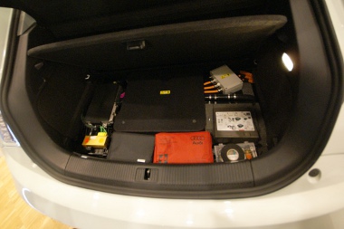 Wankel motort kap pótkerék helyett az elektromos A1. A lítium-ion akkumulátor T alakban, a benzintank helyén illetve a kardánalagútban található