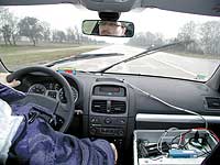 A GPS-szel (globális helyzetmeghatározó rendszer) felszerelt autók a legcsekélyebb mértékben sem engedtek teret a szubjektumnak. A laptoppal házasított műholdas kapcsolat segítségével pillanatok alatt szinte centiméteres pontossággal vetítették az adatokat. Hogy miért? Mert az abroncspróba első állomásán inkább a megállásé, mintsem a féktelen „menetelésé” volt a főszerep. A kritikus forgalmi szituációkban egyáltalán nem mellékes egy méter ide vagy oda. Mi igyekeztünk kritikus helyzetbe hozni az abroncsokat, hiszen több mint 100 km/órás sebességről kellett megállítani az autót vészfékezéssel.