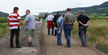 A Káptalantóti és Tapolca-Diszel közötti szebb napokat látott összekötőút volt a rendhagyó sajtótájékoztató színhelye, ahová a Kalcex Kft. invitált minket az útfelújítási technológia demonstrálására.