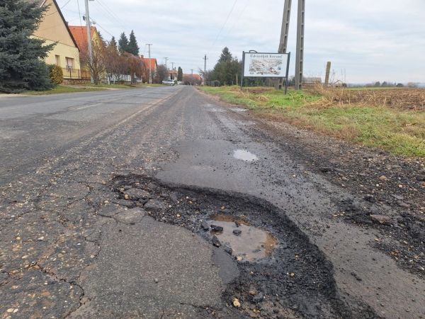– A hátsó Tatai út 8-10-es kilométeres szelvényében van három akkora kátyú, amit eddig még gumi nem élt túl. Csütörtök este, szürkület után nekünk is két kerekünk bánta. Miénk volt abban a pillanatban a harmadik defektes autó az út szélén. Aztán még egy és még egy. Mi nyolc autóig voltunk ott, majd elszállítottak – kezdte a hihetetlen történetet László, aki elmondta, hogy egy domb túloldalán volt a gödör. Vagyis aki a domb felől érkezett semmit láthatott az út szélén sorakozó autósokból.