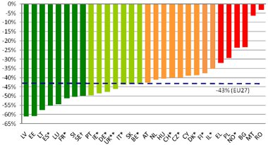 A 2001. és 2010. közötti áldozatszám csökkenés uniós átlaga 43 %, ezt 15 tagállamnak sikerült elérni, vagy túlszárnyalni. Magyarország 40 %-os eredménnyel az átlagosan teljesítő tagállamok közé tartozik. Érdemes megfigyelni a kedvező folyamatban a balti államok előre törését. Megjegyzendő ugyanakkor, hogy ezekben az országokban a közúti közlekedésbiztonság helyzete az évtized elején még jóval alatta volt az Európai Unió átlagának, tehát „volt miből” javulni. Erre jó példa a listavezető Lettország, ahol az elért sikerek ellenére az egymillió lakosra jutó halálesetek száma 2010-ben még mindig másfélszerese az EU átlagának (61 helyett 97 halott/millió lakos), s több mint háromszorosa a Svédországban regisztráltnak (ott 28 ez az érték).