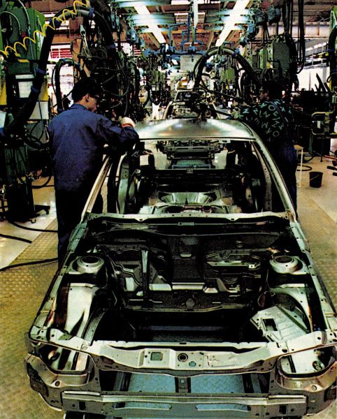 A ládákból kirakott karosszériaelemek a szalag első munkahelyein sablonra kerülnek, ami tulajdonképpen feleslegesnek nevezhető óvatosság, mert biztos, hogy becsomagolás előtt ugyanezt tették velük Bochumban. A munkahely fedett, akárcsak a szalag minden más állomásán, jókora tábla, rajta az összeállítandó alkatrészek rajza, hozzá az elem és a szükséges szerszámok megjelölése, a csoportvezető neve, a ponthegesztési feladatok és a minőség-ellenőrzés részletes leírása. A gyártási folyamat egy szempontból semmiképpen sem személytelen, a munkások minden részlettevékenységet szignálnak a kocsi kísérőlapján.