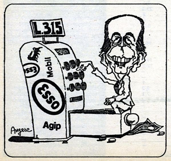 Egy vasárnap Beppe Sarenginivel, a nápolyi autóbusz-társaság sofőrjével barangoltunk Pompejiben, a Vezúv oldalán és Sorrentó környékén. Kocsija, a Mini, amely ötesztendős, könnyedén „vette” a kanyarokat és a hegyi meredélyeket. A gumi azonban fütyült, szinte sikoltott, megérett arra, hogy kicseréljék. De a drágaság miatt Beppe nem sietett a cserével, pedig új kocsira lenne szüksége, de az, úgy látszik, számára csak elérhetetlen álom. Hiszen a régiért nem kap semmit, az új pedig belekerülne annyiba, hogy a túlórával megtoldott keresete sem lenne rá elegendő. Úgy tűnik, mintha az autó mostanában némiképp háttérbe szorulna a nyugati, illetve az olasz életmódban. Leállították a gyárakat, a tél elején pedig újra megdrágították a benzint; a szuperbenzin literje (még decemberben) 315 lírába került. Hiába fogadkozott Beppe, hogy másnap majd kivisz kocsiján az állomásra, azzal az ürüggyel, hogy busszal sokkal gyorsabb kiérni a vasúthoz, otthon hagyta az autóját. Tudtam, hogy a szuper új ára késztette erre.