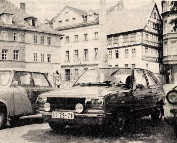 Az eisenachi Marktplatzon, közvetlenül a György-templom árnyékában ott hűsölt egy tűzpirosra lakkozott, felségjel nélküli személygépkocsi. Közelebbről szemügyre véve, mindössze a keréktárcsákon és belül, a kormányoszlopon a Wartburg-kocsikról is közismert eisenachi városcímer utalt a jármű eredetére. A takarékos berendezésű műszerfalról szinte csak annyit tudtunk leolvasni, hogy alig léte túl a tízezer kilométert. Az ötajtós karosszéria sok ismert európai modell vonásait ötvözte, elegánsan. Ám minden szónál többet ér a látvány: ítéljék meg olvasóink, a hazai sajtóban először látható képekről, vajon el tudnák-e képzelni ezt, vagy egy hasonló karosszériát egy jó VW-motorral, magyar utakon tömegesen, forintért.