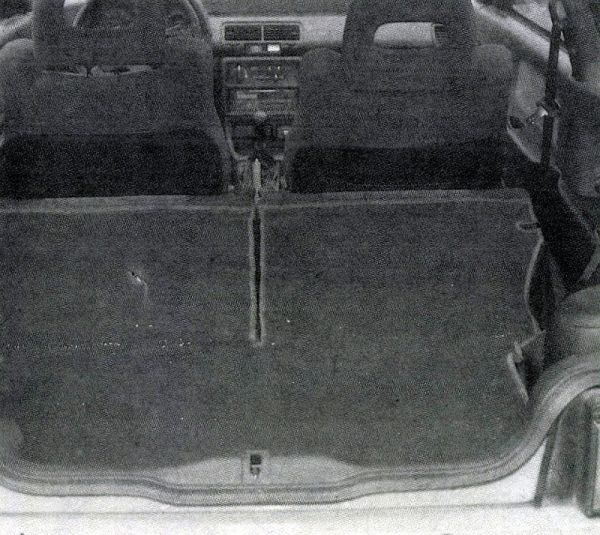 A szerelvényfalon a szokásos „japán” levegőirányítási rendszer, egyetlen kivétellel: a hőmérséklet szabályozása forgatógombbal történik. A levegőt átvezetik az ajtóba, és így fújják meg az oldalablakot; figyelemre méltó megoldás ilyen kis autóban. Ezenkívül gyanítható (nem szedtük le a kárpitot), hogy az átvezetett levegő az ajtó belső korrózióvédelmét is szolgálja.