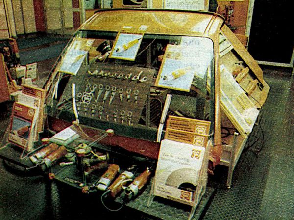 Vendéglátóink örömmel közlik, hogy néhány érdekes újdonsággal is szolgálhatnak, az autósszakma jövőjét bemutató kiállítás várja a nézőközönséget. Így például modellezték a korszerű autójavító műhely felépítését. Mélységesen sajnálom, hogy olyan kevés magyar szakember látta e modellműhely mintabejáratát. Itt ugyanis könnyen áttekinthető kartotékrendszer tartalmazza, hogy Herr Schmidt éppen Herr Schulcz autóját javítja, a normaidő két óra, majd ezután Frau Meyer Mazdája kerül sorra és így tovább. E kimutatás bemutatja az adott műhely aznapi teljesítményét; ily módon német nyelvterületen kevés esélye van a svarc munkának, hacsak a tulajdonost nem hívják Herr Schwarznak…