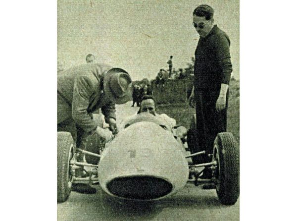 A meleg miatt-e, avagy hogy az árgus szemek elől elrejtsék a „titkokat”, többi kocsit a sátorban tartott a versenyzője, sőt akadt olyan is, aki a rakétáját műanyag fóliából szabott takaróba bújtatta. Ámde voltak szép számmal olyanok is, akik a szabad ég alatt tevékenykedtek kocsijuk mellett. Itt találtuk például a finn Max Johansont (23 éves, főiskolai hallgató lesz az idén, jelenleg versenyző és autókkal kereskedik), amint Cooperjének BMW-motorján dolgozott. Szívesen mondta el, hogy az 1000 kcm-es angol motor (BMW=British Motor Corporation) 93 lóerős, fordulatszáma 7200, sűrítési aránya 12,5:1 és az egész kocsi 360 kg.