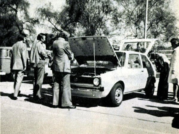 Lapunk legutóbbi számában pedig az a cikk, amely az elsőkerék-meghajtású autók múltját érintve, jövőjükre is tett jóslatot, még csak szövegben utalhatott a VW Golf-típusára. A Passat után megjelent Sciroccót már képről is láthatták olvasóink, de az ugyancsak fronthajtású VW-újdonságról még csak hivatalosnak tekinthető jelzésünk volt. Most már viszont erről is tudunk képet mutatni, mert éppen a lapzárta napjára megkaptuk a gyári fotót. Ilyen hát az újdonság: a Golf, amely 1100-as, valamint 1500-as keresztben álló, négyhengeres, vízhűtéses motorral készülhet. A rajzsorozat pedig – emlékeztetve a boxer farmotorral – az ébresztő utáni Passat, no meg az új Scirocco és Golf típusok szerkezeti elrendezését vázolja.