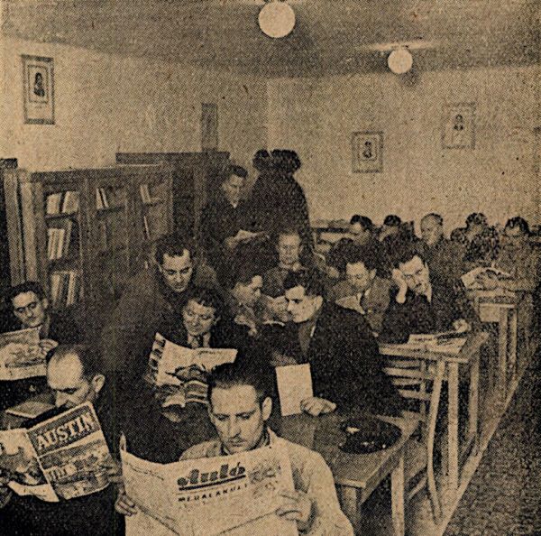 Itt is minden felszerelés modern. A tanulók hosszú asztalok mellett ülnek s figyelik a tábla előtt álló előadó szavait. Látszik mindenkinek az arcán az érdeklődés és az, hogy valósággal isszák magukba az előadó szavait. Nem kis része ered ennek a lelkesedésnek abból a gondolatból, amit az egyik munkaterem falán kifüggesztett falitábla foglal szavakba: „Az intézetben minden a dolgozó magyar nép tulajdona, a tied is. Vigyázz rá!”