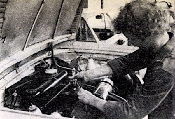 Félórás sétánk után azt látjuk, hogy hárman is állnak a Trabant motorháza körül. Valóságos konzílium, egyelőre egyik szerelő sem érti a dolgot. Mindenesetre a pipákat már leszerelték, a gyújtással bíbelődnek, a motor zúg, üvölt, az autó füstöl, a gyertyák még mindig a motorban.