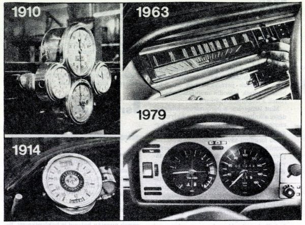 Az első autók szerelvényfalán nem volt műszer, csak egy sor olajozó, amelyeket rendszeresen működtetni kellett. Ám ahogy a sebesség varázsa hatalmába kerítette az automobilistákat, úgy lett egyre érdekesebb a kérdés: mennyivel megyünk? Megjelent a sebességmérő, később általánossá, majd kötelezővé vált a kilométerszámlálóval együtt. Az utolsó kocsi, amelyik mellőzte ezt a számunkra magától értetődő részletet, a Citroën 2 CB „Bádogpoloska” első, még hullámlemez kiadása volt a negyvenes években. Néhány primitív autón ma sincs több. A másik véglet: egyes büszke Porsche-modellek műszere, amelyek a számok ötvenesével vannak felírva, egészen háromszázig. Ezek aztán nem aprózzák el!