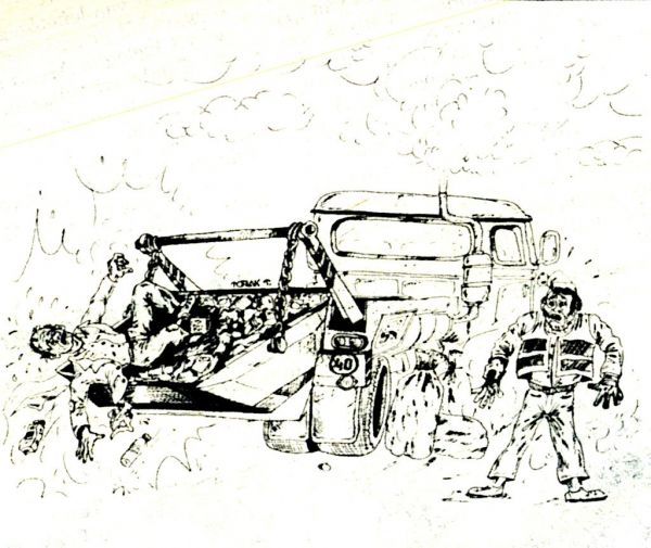 B. Árpád egy csendes, november délelőtt a Fővárosi Közterület-fenntartó Vállalat tehergépkocsijával a napi megszokott feladatkörébe tartozó munkáját, a szeméttároló konténerek összegyűjtését és ürítését végezte. A X. kerületi, Kőbányai út 45. szám előtt lévő konténer felrakása is gyorsan, rutinszerűen történt. A kocsi hidraulikus emelője a rakfelületre emelte a nagyméretű edényt, majd az autó lassan elindult. A padkán haladó tehergépkocsi döccenve hajtott az úttestre, de még mielőtt gyorsított volna, egy mellette elhaladó gépkocsiból kiabáltak rá: „Hé haver, elhagytál egy csomagot!”