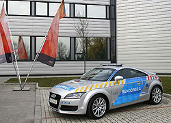 Az Audi és a rendőri szervek kapcsolata nem új keletű, hiszen 2005-ben az Audi Hungaria Motor Kft. egy fehér színű Audi TT Coupét adományozott a magyar rendőrség részére, szintén a közlekedésbiztonság javítása céljából. A most átadott 3.2 V6 motorizáltságú autó teljesítménye és menettulajdonsága alkalmassá teszi arra, hogy azt az Autópálya Rendőrség munkája során hatékonyan tudja alkalmazni. Az autó legnagyobb forgatónyomatéka 320 newtonméter, ami már 2.500 és 3.000 percenkénti fordulatszám között rendelkezésre áll, maximális teljesítménye pedig 6.300 percenkénti fordulatnál 184 kW (250 LE), 0-ról 100 km/órás sebességre pedig mindössze 5,9 mp alatt gyorsul. A 3.2 V6 motor egy könnyű magnéziumházzal készülő, hatfokozatú manuális sebességváltóhoz csatlakozik, a quattro hajtás segítségével pedig rossz időjárási körülmények között is biztonsággal használható az autó. Normál körülmények között a tengelykapcsoló a forgatónyomaték 85 százalékát irányítja az első kerekekre, ám szükség esetén a hajtás akár teljes mértékben is egy adott tengelyre juthat.