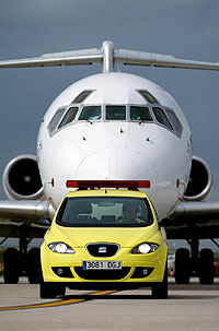A „Follow me” gépjárműként alkalmazott Alteák, melyek már megjelentek az El Prat repülőtéren, leszállás után parkolási pozíciókba vezetik a repülőgépeket.
