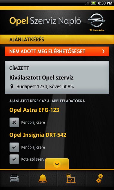 Az Opel Szerviz Napló alkalmazás egy intelligens útitárs, amely az autója adatainak megadása után mindig időben figyelmeztetni Önt a gépjárművével kapcsolatos aktuális állapotfelmérésre.