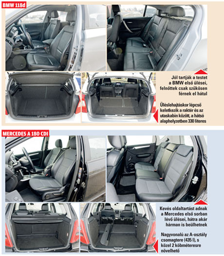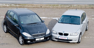 A divatos kis 1-esnek létezik háromajtós, kupé és kabrió változata is, mégis a praktikus, de szintén tetszetős vonalvezetésű ötajtósok alkotják a kínálat zömét. Hazánkban nagyjából 160 BMW 1-est hirdetnek, közülük kb. 110 a dízel, 50 pedig benzines. A sort a 2,6 milliós 116i-k (115 LE) nyitják, míg a legdrágább ötajtósok akár 7 milliót is kóstálhatnak. A 2004 őszén debütáló frissített A-osztályból körülbelül 130 darabot kínálnak eladásra, a benzines és dízel modellek aránya hozzávetőlegesen 50-50%. A legolcsóbb A150-es (95 LE) példányok 2,3 milliótól érhetők el, a legdrágábbak akár 6,8 millióba is kerülhetnek.