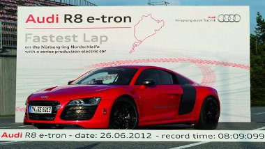 Noha azt állítják a németek, hogy az övék a leggyorsabb, sorozatgyártású elektromos autóval elért kör, van egy kis hiba ebben az állításban. Nem egyezik meg a nemsokára megvásárolható sorozatgyártású R8 e-tronnal a rekorder autó. Nem arról van szó, hogy ezt még kézi munkával rakták össze, hanem arról a döntő tényezőről, hogy amíg a szériaváltozat végsebességét 200 km/órában korlátozzák, addig ez a prototípus 250 km/órás sebesség elérésére képes. Az Audi által emlegetett 8:09.099-es idő tehát nem a sorozatgyártású Audi R8 e-tronra vonatkozik, hanem egyedi prototípusra. A németek is érezték, hogy ez nem teljesen helyes, ezért Markus Winkelhock-ot egy másik, 200 km/órára korlátozott végsebességű autóval is körbeküldték a Nürburgringen, ekkor 8:30.873 és 8:26.096-os köridőt ért el az autó. Azért ez se rossz…