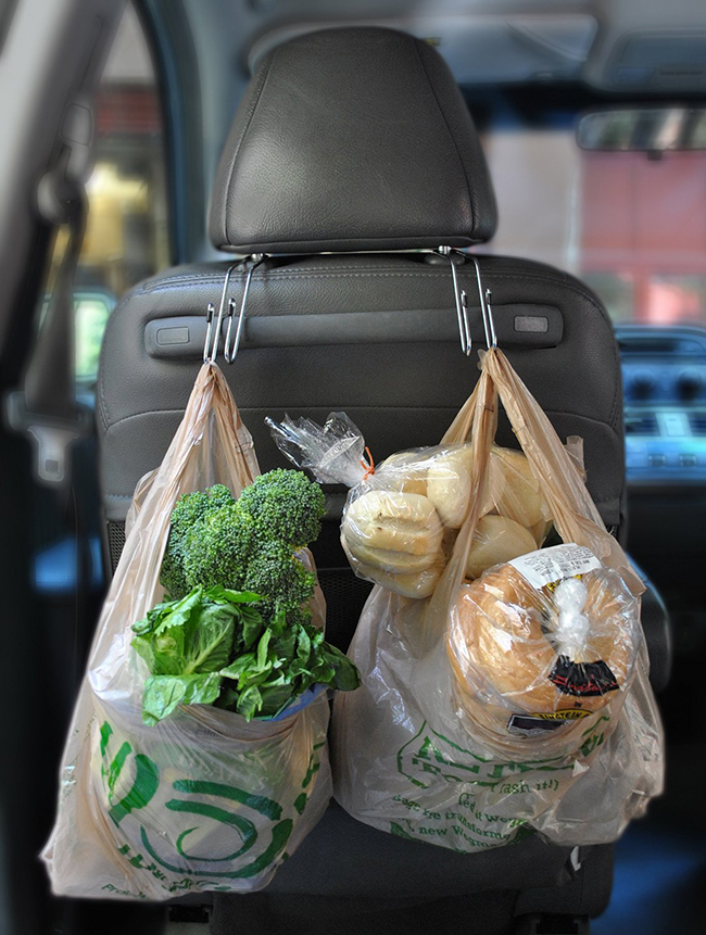Bevásárlás után nagy segítség lehet ez az egyszerűen fejtámlára felszerelhető akasztó.