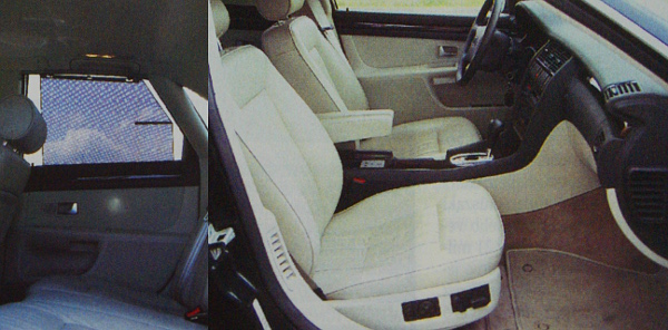 Az utastér maradéktalanul eleget tett a luxus kategória követelményeinek. A műszerfal és az ajtókárpit bőséges mennyiségű faberakást kapott, a kormánykerék és a sebváltókar bőrbevonatú. A karosszériára utalva stílszerűen alumíniumból készült az automatikus sebességváltó kulisszája, valamint a szellőzőrostélyok záróeleme. Egyébként ezekből a rostélyokból összesen 10 darabot találunk a műszerfalon, további hat pedig a hátsó ülésekhez vezet. A 4,2 literes csúcsverzióban nemcsak a kétoldali automatikus klímaberendezés gondoskodik a megfelelő hőmérsékletről, hanem a hőszigetelő üvegezés is. Két darab, 2,5 mm vastagságú üveg közé ugyanis egy 0,76 mm-es fólia került, amely az UV-sugarak 99 százalékát távol tartja az utastértől. A hőszigetelést a külső üveg belső falára felvitt .- az infravöröst visszaverő – láthatatlan fémréteg oldja meg. Az új szigetelés természetesen a zajt is nagyobb mértékben kirekeszti, 160 km/h-ig gyakorlatilag nincs is hallgatnivaló, e tempó felett is csak a menetszél kezd el igazából sustorogni.