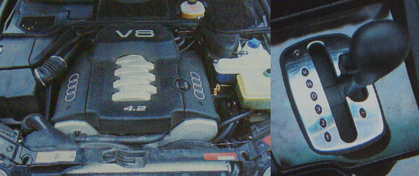Annak ellenére, hogy már az előbb ismertetett megoldásokkal is jelentős tömeget tudtak megspórolni, a súlycsökkentés alól a 4,2 literes V8-as motor sem bújhatott ki, hiszen a 300 lóerős erőforrás teljes egészében könnyűfémötvözetből készült. A kiváló menetteljesítmények – álló helyzetből 7,3 másodperc alatt éri el a 100 km/h tempót, mesterségesen határolt végsebessége pedig 250 km/h – maradéktalan kiaknázása érdekében kizárólag összkerékhajtással szerelik a legerősebb 8-ast.