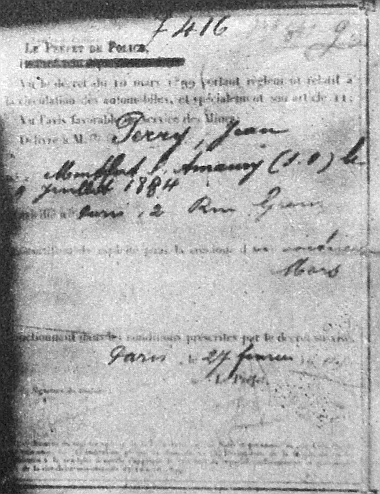 A párizsi „Le Préfet de Police” bizonyítja, hogy J. Perry 1901. feb. 27-től automobil vezetésére jogosult