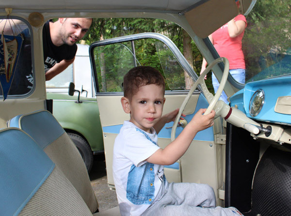 Zwick Gábor Dunaharasztiból érkezett családjával, egy 1962-es púpossal. Tavaly voltak itt először, nagyon jónak találták a környezetet, a hangulatot. Kisfiuk is tud csúszni, mászni, kisautózni, nem kell rá úgy odafigyelni, hiszen nincsenek „őrültek”.