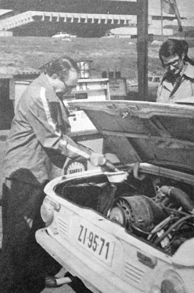 Van autós, aki így rendel a kútnál: Kérek százasért simát – és előre fizet. Ez annyit jelent, hogy itt ne számíts borravalóra. A legtöbb trabantos tele kérem-mel rendel. Ritkaságok közé tartozik, aki kilép a kocsiból és maga nyitja ki a gépháztetőt. A tanksapkához – talán – senki sem nyúl. Érthető, hiszen az a keveréktől olajos.