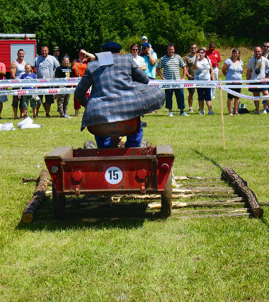 Mivel a fesztivál idején épp utat építettek Romhányban, lemondtam arról, hogy a főtéri gyülekezőre is bemenjek a központba, inkább leállítottam az autót a faluvégi focipályán, ahol már javában zajlottak az előkészületek. Kenték a zsírosdeszkákat, a gyereksarokban már készültek a csöppségek rohamára, és a sörösrekesz-torony építők is javában gyakoroltak-melegítettek a mezőny érkezése előtt, akik aztán tíz óra után nem sokkal jöttek is.