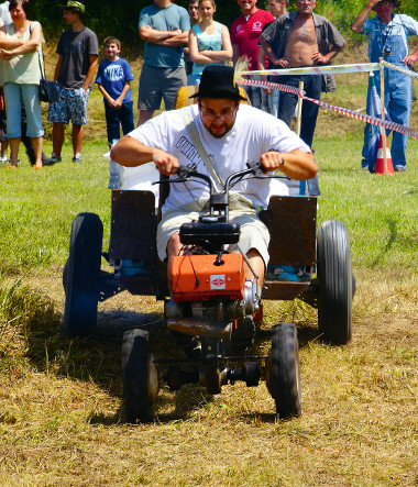 Már messziről hallható volt a felvonulás, meg látható is, hiszen volt, aki nem spórolt a motorolajjal a kétütemű gépben. Versenyről lévén szó, az indulók igyekeztek a lehető legtöbbet kihozni a gépekből, persze a sportág filozófiájának megfelelően a lehető legminimálisabb befektetéssel. Robogókról származó dupla végződésű, vagy egyébiránt kanyarított kipufogók, már ha egyáltalán volt ilyen. Volt, aki rögtön egy komplett gépet épített, autókerekekkel, sportosan mélyre helyezett üléspozícióval, volt, aki az utánfutót fullextrásította epedás autóüléspaddal, meg a kerti asztal felől elcsent napernyővel. Hogy aztán minden felesleges extrát hátrahagyva menjenek a nagy küzdelembe.