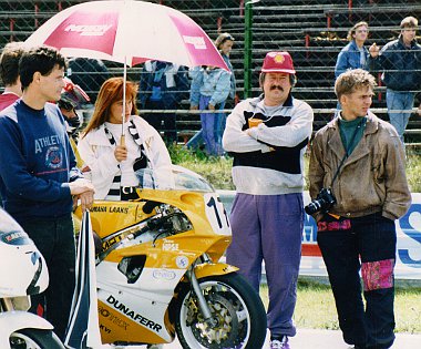 – Igen, ennek keretein belül versenyeztünk, 1990-től annyi változással, hogy a blokk tuningolásán felül saját magam készítettem a vázat és a kipufogórendszert is. Ezzel már az első helyig jutott András a Simson Kupában, s nemcsak 1990-ben, hanem 1991-ben is, jöhetett tehát a nagyobb kategória, nevezetesen a Magyar Gyorsasági Bajnokság 400-as géposztálya. Az ő vezetői és az én gépésztudásom itt is verhetetlennek bizonyult, András bajnok lett, s újabb lépcsőt ugorhattunk, immáron a Superbike Bajnokságba, ahol számos futamgyőzelmet könyvelhettünk el . Itt egy pillanatra megakad a társalgás, János nyel egyet, és folytatja. – Sajnos az élet úgy hozta, hogy egy időre hátat kellett fordítanom a motorsportnak, közel 10 évig csak üzleti ügyekkel foglalkoztam – zárja rövidre a 90-es éveket.