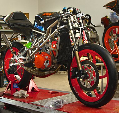 – Pár évvel ezelőtt Witmann István barátommal kitaláltuk, hogy megépítjük minden idők legbrutálisabb Simsonjait. Az első két gép 2009-ben készült el, ezekkel Ragacs Róbert, illetve Manzel Dániel versenyzett és végzett az első két helyen. Tavaly ezt a két gépet eladtam, egyiket a német Simson GP éllovas csapata vette meg, és újabb változatokat építettünk. Egyrészt készült egy króm-molibdén vázas kivitel, majd megcsináltuk régi nagy vágyunkat, egy térhálós titánvázra épített Simsont, amivel az idén szeretnénk bizonyítani a hazai és a német „szimósok” között.