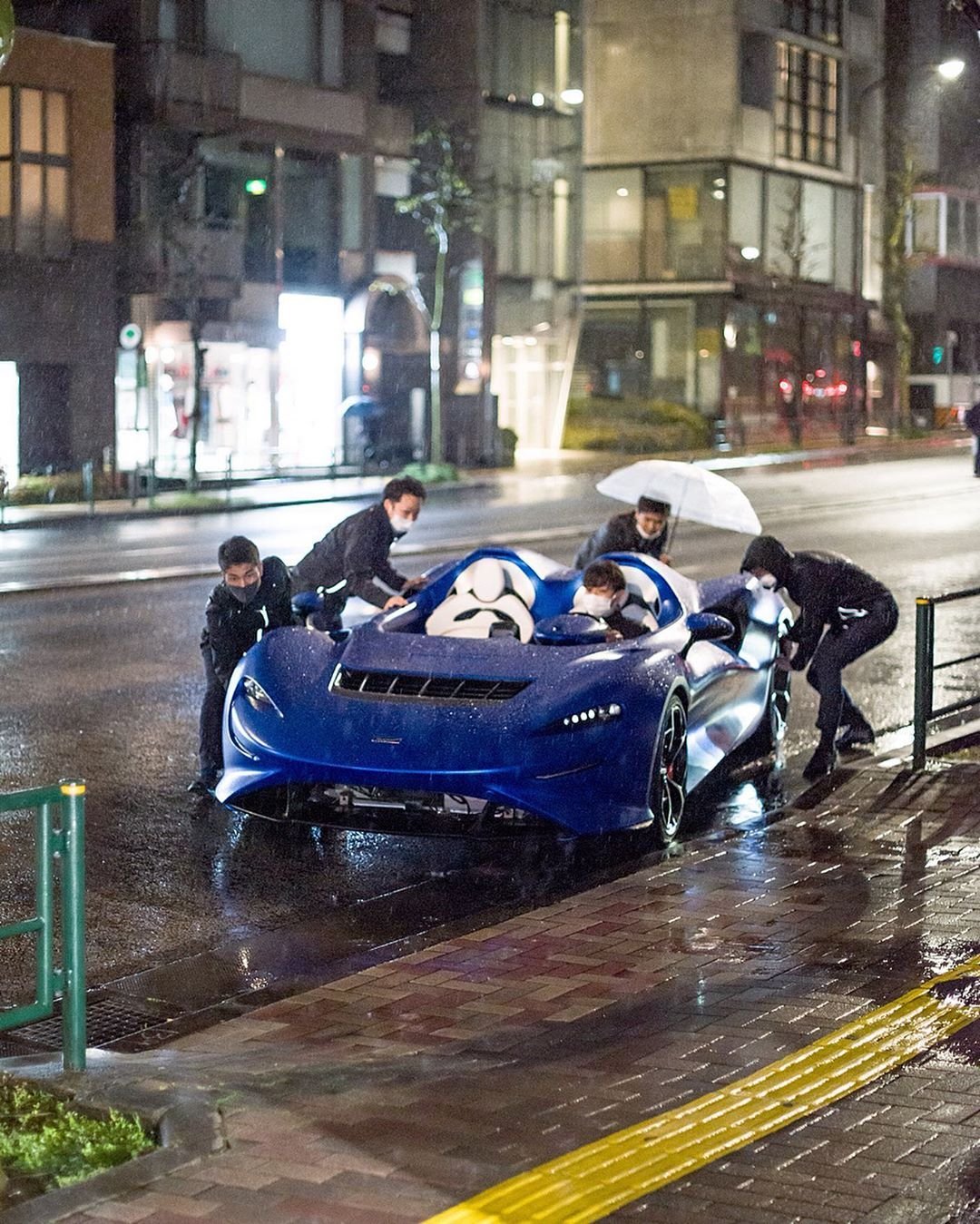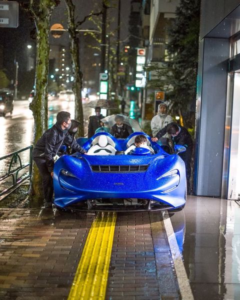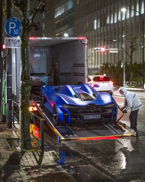 Az első McLaren Elvát Tokióban fotózták le, és rögtön szemben is találták magukat a szállítók egy óriási problémával: az esővel.
