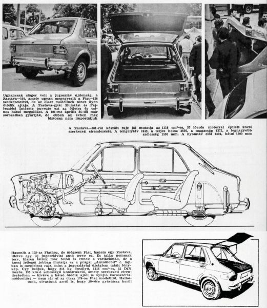 Bár az 1971-es Belgrádi Autószalonon debütált Zastava 101-est nem csak a keleti, hanem a nyugati piacokra is exportálták, a Simca 1100-astól ellesett hátsó kialakítás nem volt elég a jugoszlávok dicsőségéhez. Olasz származása azonban nem akadályozta meg a sikerét, hiszen változtatás nélkül került gyártásba, orrában ott dolgozott az Aurelio Lampredi-féle 1116 köbcentis, 55 lóerős, felülvezérelt, felülszelepelt (SOHC) motor. A rossz utakon jól teljesítő, független felfüggesztés, az élénk kormányzás és az erős fék megfelelt az aktuális nyugati színvonalnak. Kényelme és praktikuma az alapesetben 325 literes, a bővítés után 1010 literes csomagtartóval a legtöbb korabeli riválisán túlmutatott.