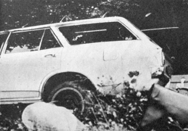 Valahogy a bal oldali ajtón át kikecmergünk. Pista feje és könyöke véres, feleségén és nevelt lányukon egyetlen karcolás sincs. Asszonyom fején borzasztó púp, de törése, úgy látom, nincs. Mindjárt megáll odafönn 2-3 kocsi, lesietnek segíteni néhányan. Leülök, mert magam is gyönge vagyok, körülnézek. És elborzadok, amikor felnézek a szerpentinre. Később meg akarom szemlélni a kocsi jobb első részét kívülről is. Odavánszorgok az Opel elejéhez, de a jobb első kerék közelébe már nem férek oda. A legszélső kis fától úgy 60-70 centire 55-60 fokos, köves hegyoldal, az alja valahol 80 méternyire lehet.