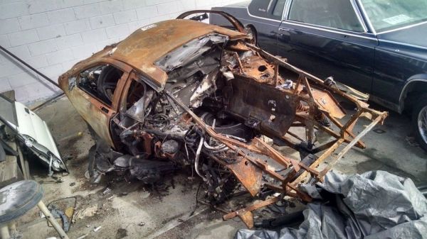 Mert buktató az van, méghozzá nem is kicsit. Ugyanis, mint a hirdetés képeiből kiderül, egy leégett Lamborghini Murcielagót lehet megvásárolni, amiből tulajdonképpen semmi nem maradt.