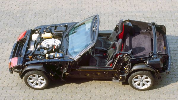 A túra talán legizgalmasabb kocsija, a BMW modernkori történetének első roadstere, a Z1-es volt. Bevallom, amíg csak képen láttam, majd a gyári múzeumban fotóztam, nem tett rám különösebb hatást. A küszöbbe süllyedő ajtó inkább jópofa geg, mint komoly autó illúzióját kelti, de pár kilométer megtétele elég volt ahhoz, hogy 180 fokos irányt vegyen a véleményem. Mint roadster, kifogástalan. A fura, egyedi ajtómegoldás nemcsak poén és nemcsak arra jó, hogy közelről lássuk az utat és jobban kavarjon bent a szél, hanem arra is, hogy merevítse a karosszériát.