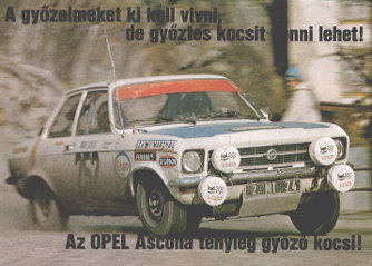 Röhrl és Berger 1974-ben Európa-Bajnokságot nyert az Asconával Annak ellenére, hogy az Ascona nem volt olyan sportos megjelenésű, mint a Manta, az Opel mégis ezzel ralizott. Első igazán nagy sikerét is ezzel az autóval érte el, az 1974-es szezonban Walter Rörhl és Jochen Berger Európa-bajnok lett a kétajtós Asconával. Ennek ellenére nem tudott maradandót alkotni az autó, az első generáció öt éve alatt 645 505 példányt értékesítettek belőle, mégis mára már alig maradt belőle működőképes példány. Olyan jó volt az autó, hogy idő közben szinte az összeset elhasználták, és mivel veteránként se olyan értékes, mint a Manta, nem sokan foglalkoznak a felújításukkal. Kár érte, mert Európa-bajnok autóban ülhetnének…
