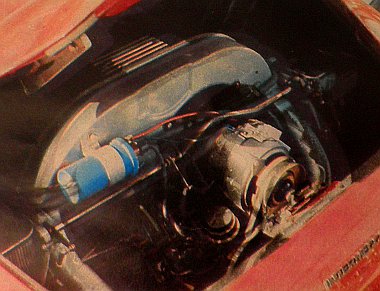 A jól sikerült másolat farában egy 2 literes VW-motor termeli az energiát, igaz, a főtengelye, a vezérműtengelye és még egyéb kisebb eleme Porsche gyártmány… Ám hátul „INTERMECCANICA” márkajelzés olvasható.