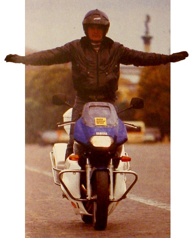 „A bitumenen 40 vadonatúj Yamaha Diversion típusú 600 cm3-es motorkerékpár sorakozott fel, mellettük leendő gazdáik, a közlekedési rendőrök. Elhangzott az üdvözlés, köszöntőt mondott Túrós tábornok … s hittük, mindenki boldog. Ám ekkor robbant a bomba. Amikor a tábornok vezetőtársai kíséretében Noszlopy Tamás törzsőrmesterhez lépett… a tábornok azon kérdésére, hogy érzi magát, mint újdonsült motortulajdonos, korántsem örömének adott kifejezést. Mint elmondta, sok hibájuk van ezeknek a motoroknak, de még több a felszerelésüknek. –„Ezekkel a motorokkal életveszélyes biztosításban részt venni. Az első kerék szitál, a kormányt egy kézzel szinte lehetetlen tartani. A térdspoiler olyan szűk, hogy szinte nem is fér a lábam a fékhez. Ha a kék fényt és a szirénát bekapcsolom, néhány kilométer után >lekapják< a generátort, a motort még betolni sem lehet.”