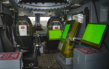 A kamu „haditechnikai” műszereket még bekapcsolni sem lehet. A leragasztott monitorokra digitális utómunkával vitték fel a képet