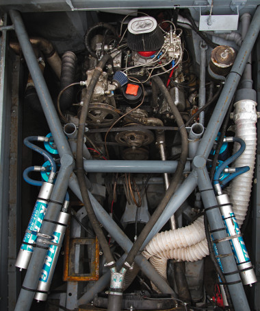 Ezt a masinát a filmkészítő autós partnere rakta össze. A kasztni üvegszálas, a csővázat műanyag dobbetétek takarták a forgatások alatt
