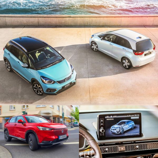 A 2019-ben debütált CR-V Hybriddel (azóta már CR-V e:HEV) új korszak vette kezdetét a Hondánál, ugyanis alapjaiban friss hibrid rendszert fejlesztettek. Az e:HEV hajtás lényege, hogy a benzinmotor áramtermelőként funkcionál és csak bizonyos helyzetekben, egy kuplung zárásával hajtja közvetlenül az első kerekeket. Vagyis az esetek túlnyomó többségében a hajtás feladatát a villanymotor végzi. A CR-V és a tavaly óta kapható új Civic esetében 2,0 literes erőforrást használnak, ám utóbbinál sok-sok technikai finomítás jóvoltából a motor termikus hatásfoka 41%-ra emelkedett. A kompakt 5 ajtósnál aktív navigáció esetén a hajtás „olvas” a domborzati viszonyokból, így például egy lejtő előtt el tudja használni az összes energiát az akkuból. A kisebb e:HEV modellekben, a Jazz-ben és a HRV-ben 1,5 literes, 4 hengeres blokk dolgozik, de mivel a szabadidő-autó frissebb fejlesztés, módosították a telepcsomagot (48 helyett 60 cellás a lítium-ion akkumulátor), amivel lehetővé vált, hogy a villanymotor teljesítményét is emeljék. Így aztán többet tud elektromosan menni az autó, a Honda szerint városi üzemben, 40 km/órás tempóig a menetidő 90%-ában be sem indul a benzinmotor.