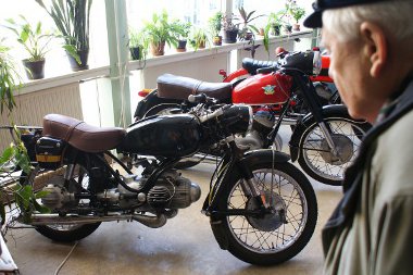 Ha túlverekedjük magunkat a bejárat előtti büfékocsikon, és megváltjuk a belépőt, amit aztán egy lépéssel odébb már szét is tép a biztonsági őr, az előtérben kiállított régi motorkerékpárok csodálásával kezdhetjük a nézelődést. Kicsit zsúfolt ugyan a hely, de azért minden részletet meg lehet figyelni.