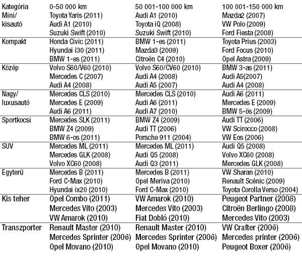 Nem csak életkor, de futásteljesítmény alapján is szétválogatták az eredményeket, így például az éves szinten keveset futó, de drága sportkocsik, amelyeket még akár tízéves korban is márkaszervizbe hordanak, nem kerülnek automatikusan az élre csak azért, mert nincsenek meghibásodásaik. A rendszeres karbantartásban részesülő cégautók még nagy futásteljesítménynél is megbízhatóan üzemelnek, de gyorsan kiöregednek ebből az értékelősből, ahol 50, 100 és 150 ezer kilométeres futásteljesítménynél nézik az egyes autótípusok hibáinak számát.