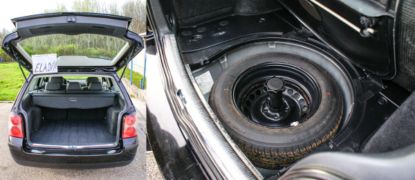 Könnyen pakolható, öblös csomagtér – persze a kombi drágább. Érintetlen peremdíszléc, gyári matrica a pótkerék mellett Piacmustra