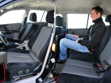 A sofőrülés lapja kissé megkopott, amúgy minden a helyén. Hátul langaléták is jól elférnek, mindenkinek jut hárompontos öv