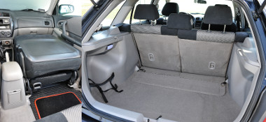 A nagy tengelytáv (2610 mm) fórja a szellős hátsó sor és a 355 literes raktér. A hátsó ülések is tologathatók, az anyósülés pedig hosszú tárgyak szállításához lapjára hajtható. Apró szépséghiba, hogy a hátsó támlák faramuci módon 50:50 arányban osztottak, így részleges ülésdöntés után csak egy utas fér el a második sorban. A biztonságot a legtöbb 323-asban front-, valamint mellkast és fejet is védő oldallégzsákok fokozzák.