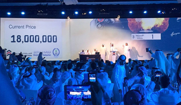 Az Emirates Auction cég több különleges rendszámtáblát bocsájtott áruba szombat este, de ezek közül kiemelkedett a Sharjah emirátusban kiadott „1”-es tábla. 1 millió dirham volt a kikiáltási ár, és többen is magukénak akarták tudni ezt, percek alatt 18 millió dirham, azaz 1,35 milliárd Ft-ra ugrott fel a licit.