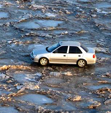 Szemmel láthatóan összeállt táblák alkotják a jégpáncélt, az egyik képen látszik az is, hogy nem messze a hídtól még szabad a vízfelület. Még a hídon lévők is hallották a ropogást, ennek ellenére a Suzuki sofőrje elszánt maradt. Végül erőfeszítését mintegy 10 perc után siker koronázta, és a túlparton felhajtva távozott a hídon várakozók-csodálkozók látómezejéből. Valamiért a Suzuki Swift Sedan sofőrjei egyébként kedvelik a vizet, emlékeznek még arra a budapesti esetre, amikor egy vízcsőtörés miatti pocsolyába hajtott egy példány?